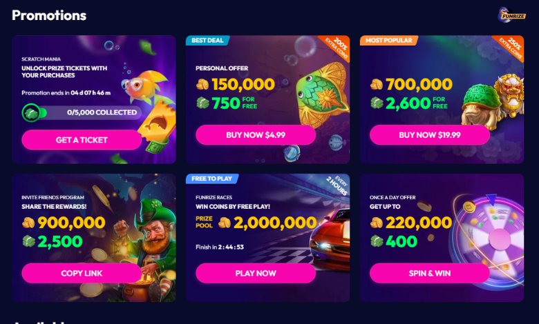 Alongside regular bonuses, Funrize offers exciting, time-limited promotions that provide additional challenges and rewards: