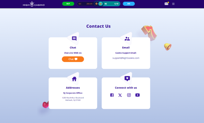 Players can reach High 5 Casino customer support through multiple channels, ensuring that help is always just a few clicks away: