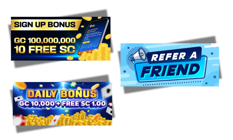 - Sign-up Bonus: New players receive a welcome boost of 100,000 GC and 10 SC, setting them up for a great start.